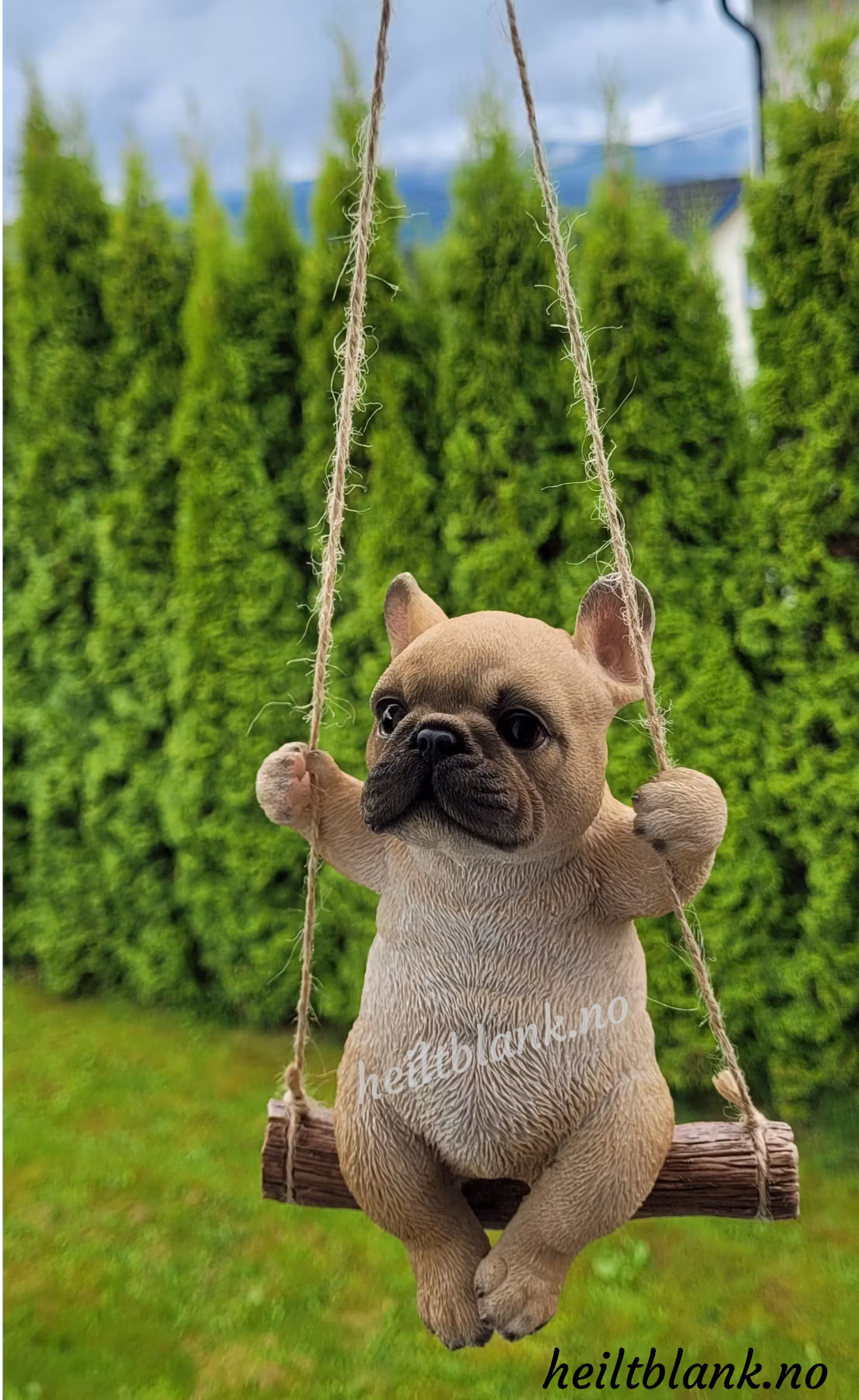 Fransk bulldog på huske 359,- 251,- Produktet finnes dessverre ikke på lager. Herlig fransk bulldog som sitter på en huske.Kan brukes både inne og ute.Mål:Høyde - 14cmBredde - 12cmDybde - 8cmLengde med tråd - ca 32cm